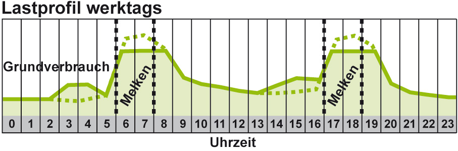 Um durch Lastspitzenkappung Geld sparen zu können, muss ein Betrieb keinen außergewöhnlich hohen Strombedarf haben. Milchbauern haben beispielsweise zwar keinen hohen Jahresstromverbrauch, benötigen aber zweimal täglich viel Leistung für die Melkmaschinen. Für diese Leistung zahlen sie das ganze Jahr.