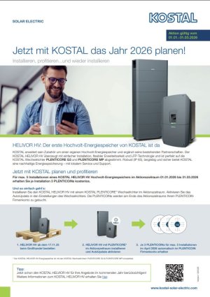 - Installieren Sie den KOSTAL HELIVOR HV zusammen mit einem KOSTAL PLENTICORE G3 oder MP im Aktionszeitraum.