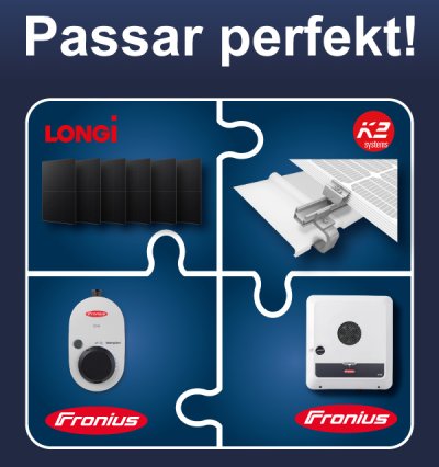 Klicka på ett av systemförslagen som visas här och få mer information om de kombinerade solcellskomponenterna och tillverkarnas varumärken.