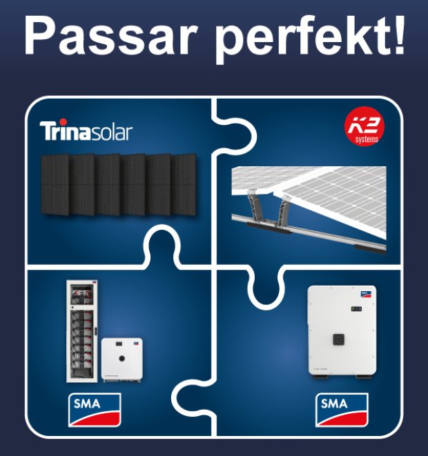 - SMA Commercial Storage Solution 30, bestående av hybridväxelriktaren Sunny Tripower Storage X, batterilagringen SMA Commercial Storage med en kapacitet på 30 kWh och en Energy Meter, är SMAs heltäckande energilagringssystem för kommersiella tillämpningar. Förutom enkel installation erbjuder SMA omfattande support under hela produktlivscykeln. Tack vare modulära komponenter är systemet flexibelt och kan utökas. .