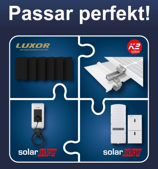 Det ägarledda medelstora företaget Luxor Solar med huvudkontor i tyska Stuttgart lägger särskild vikt på hållbarhet och tillförlitlighet av sina solcellsmoduler. Med ECO LINE M108 glas/folie TOPCon-modulen med upp till 430 Wp kombinerar Luxor Solar högeffektiva N-type TOPCon-celler med den traditionella glas-folie-konstruktionen. Denna Fullblack-modul med en verkningsgrad på upp till 22,35 % har en produktgaranti på 25 år och en effektgaranti på 15 år.