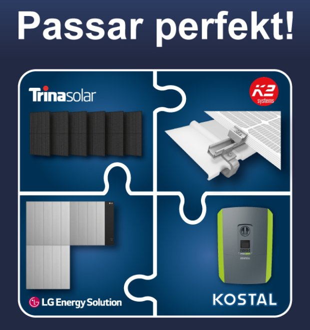 Trina Solar är en ledande global leverantör av helhetslösningar för solenergi. Företaget grundades 1997 och är idag verksamt i över 100 länder och regioner. Trina Solar utvecklar solcellsmoduler, energilagringssystem, intelligenta system- och driftlösningar och erbjuder sina kunder skräddarsydda lösningar för systemintegration. Vertex S+ (NEG9RC.27) imponerar med sin långa hållbarhet och höga prestanda (upp till 440 Wp) i kombination med den designstyrda estetiken av en fullblack-modul när den monteras parallellt med taket. Tack vare den stabila dubbelglas-konstruktionen i kombination med celltekniken N-typ i-TOPCon ger Trina en 30-årig effektgaranti och en 25 års produktgaranti.